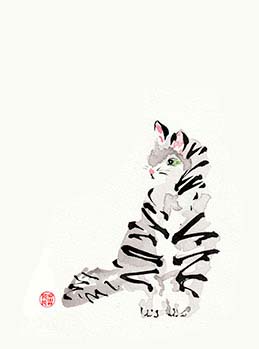 Los trazos del Sumi-e, antiquísima técnica de pintura al agua llevada a cabo con tinta china en barra molida sobre un tintero de piedra hasta llegar al negro y los pinceles clásicos japoneses, en busca de la belleza y la sencillez.